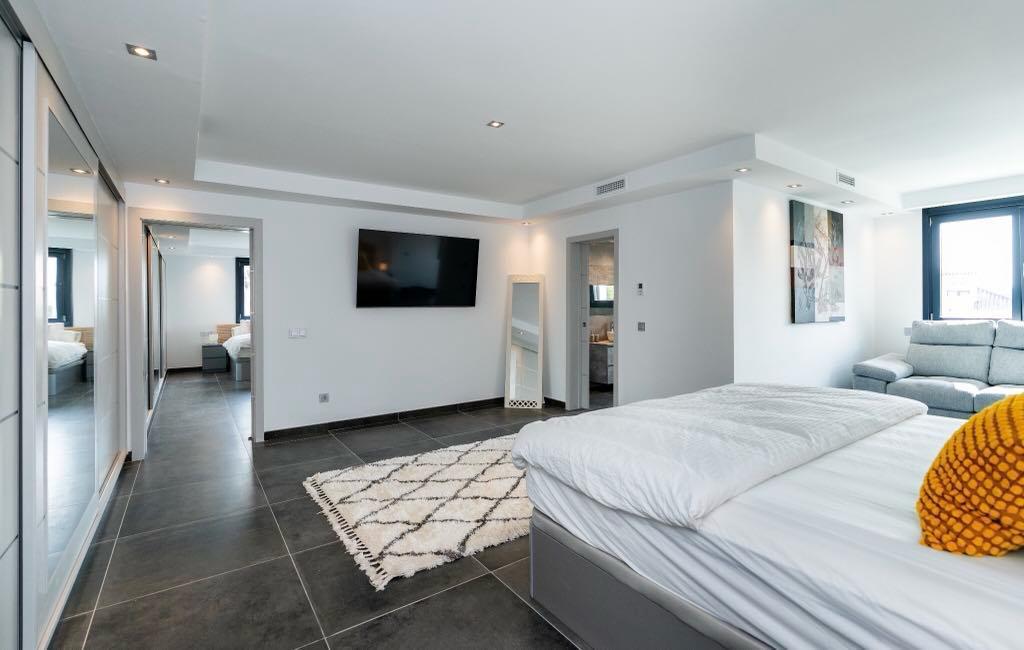 Роскошная вилла в современном средиземноморском стиле с 6 спальнями с ванными, бассейном с солёной водой, подземным баром с танцполом и тропическим садом – идеальна для семейного отдыха, гольфа (поля Лос-Наранхос, Ла-Магна и Алоха ) или элегантных каникул. Максимальная вместимость – 12 гостей.